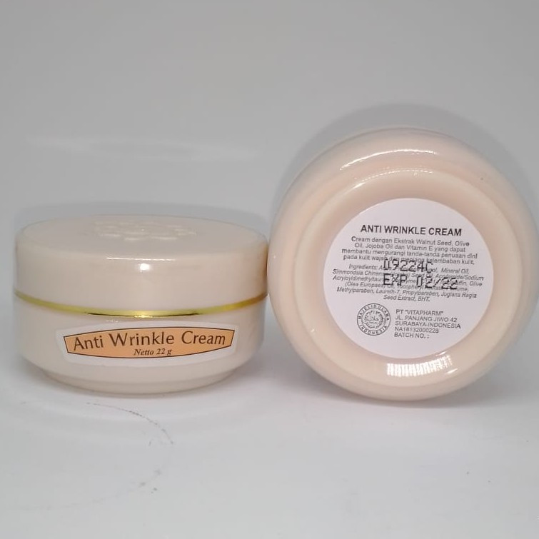 Cream yang mengandung Ekstrak Walnut Seed untuk membantu mengurangi timbulnya kerutan, Vitamin E sebagai Antioksidan, serta Jojoba dan Olive Oil untuk menjaga kelembaban kulit.