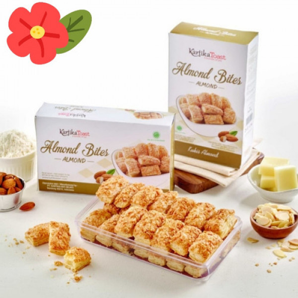 Kue almond adalah salah satu produk yang paling dicari dari Kartika Toast. Kelembutan dan kerenyahan kulit kue kering pada Almond Bites, terutama dengan taburan gula di atasnya, menjadikan camilan ini pas dengan cita rasa Indonesia dan bahkan Asia.