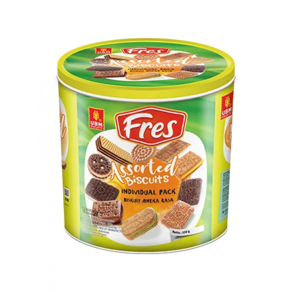 Fres Assorted, dengan berbagi macam varian Rasa dan Bentuk, dengan kemasan menggunakan kemasan kaleng untuk isi yang lebih banyak, yang pastinya sudah teruji dan sudah bersertifikasi. Biskuit yang dibuat dengan bahan yang berkualitas dan diproses dengan mesin yang canggih.